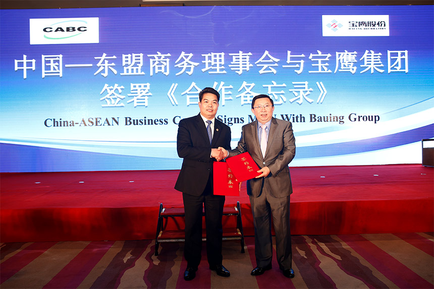 ▲古少波董事長(zhǎng)代表寶鷹集團(tuán)與中國(guó)—東盟商務(wù)理事會(huì)簽訂了《合作備忘錄》