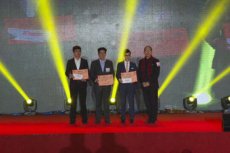 ▲副總裁羅仕居、莊西湖為第三批優(yōu)秀員工頒獎