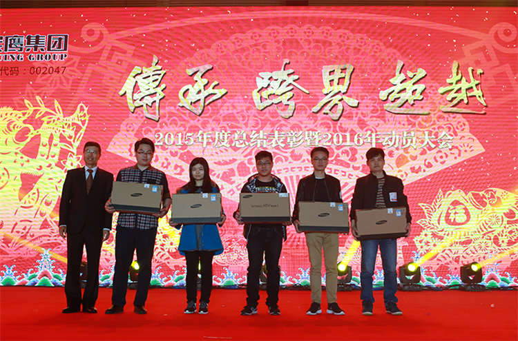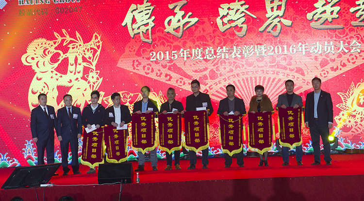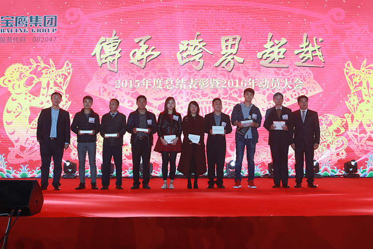 隨后,胡蘭萍主席依次宣讀了寶鷹集團2015年優(yōu)秀員工、優(yōu)秀項目經(jīng)理、先進管理者、優(yōu)秀項目部、安全文明施工示范項目部、先進集體和業(yè)績突出者的獲獎名單,并由集團領(lǐng)導(dǎo)和受邀嘉賓依次為各位獲獎?wù)哳C發(fā)獎項和證書。獲獎?wù)叽砭诎l(fā)言中強調(diào)團隊的重要性和集體榮譽感,表示要在新的一年繼往開來,不斷努力。