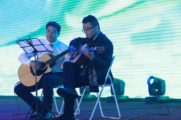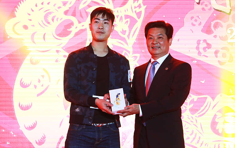 ▲副總裁陳龍、戴宏為第一批優(yōu)秀員工頒獎