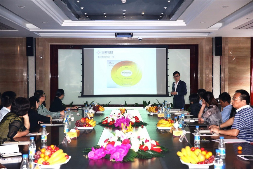 ▲吳義課總裁助理做題為《寶鷹文化對人力資源管理的影響》的經(jīng)驗(yàn)分享