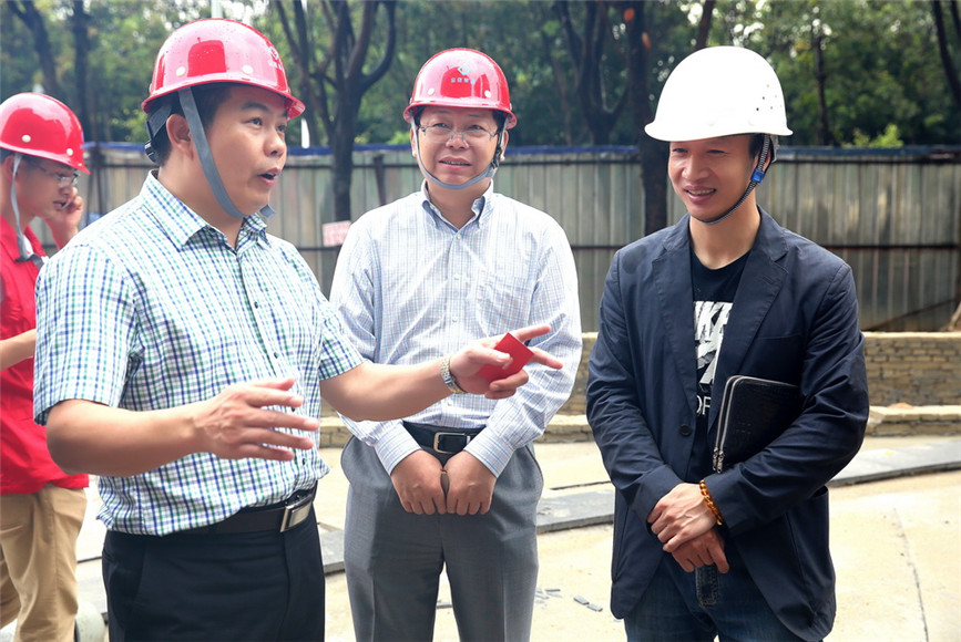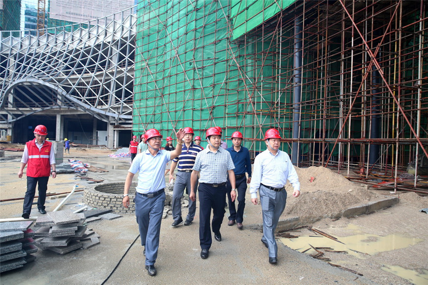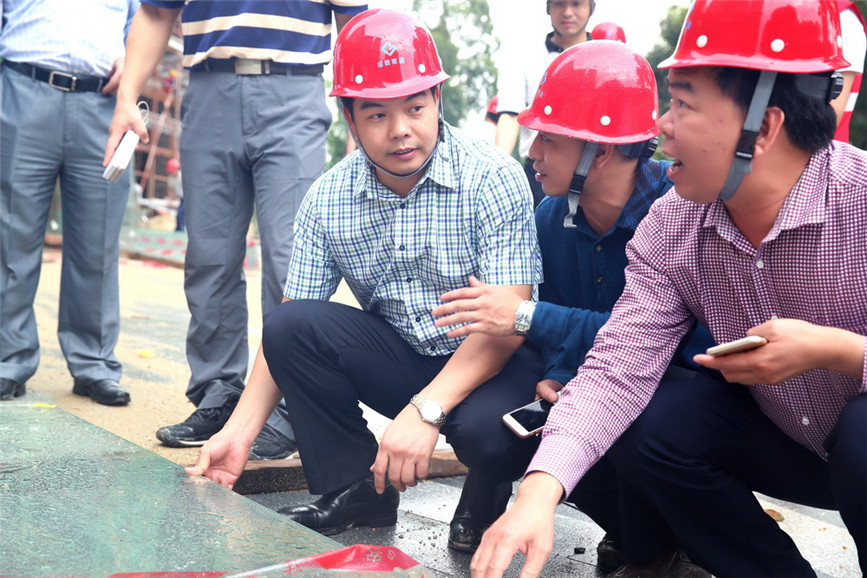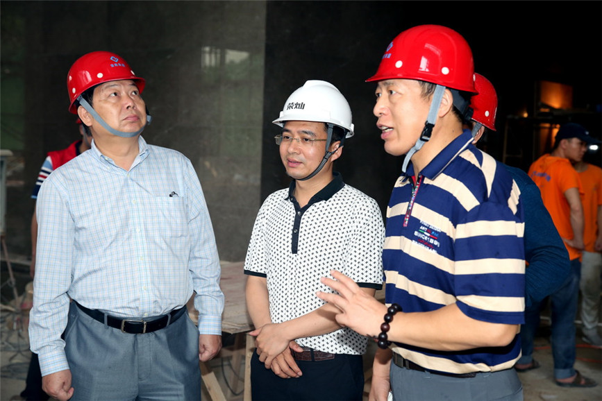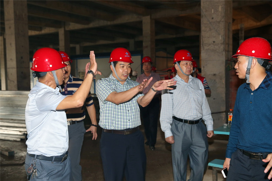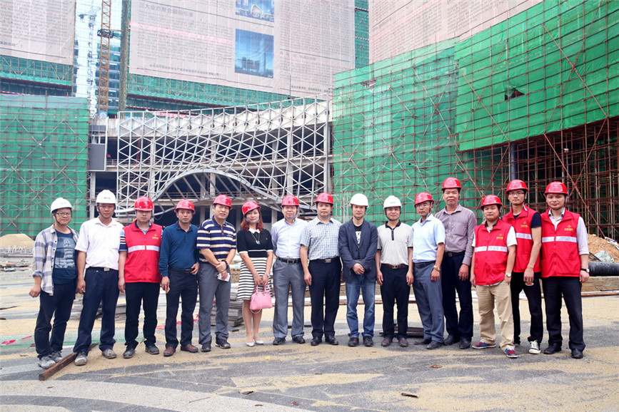 隨后,在寶鷹集團項目部工作人員的陪同下,雙方來到施工現(xiàn)場,就工程建設(shè)的進度問題仔細核對。在由寶鷹集團負責施工的裙樓展示區(qū)幕墻工程施工現(xiàn)場,古少波董事長及寶鷹集團眾高管就施工工藝、所用材料、項目施工難點等情況向項目部同事一一仔細詢問,并現(xiàn)場檢查安全施工事項,叮囑現(xiàn)場施工人員嚴把安全生產(chǎn)關(guān)。