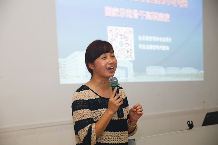 寶鷹建筑學(xué)院黨總支副書記余娜介紹校企合作培養(yǎng)模式
