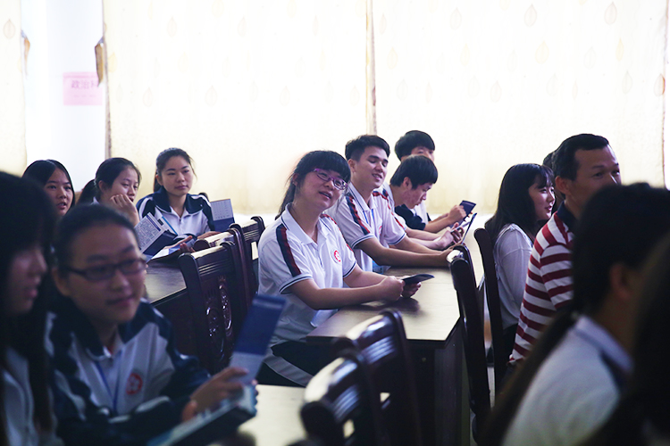 宣講團(tuán)與學(xué)生親密互動(dòng)