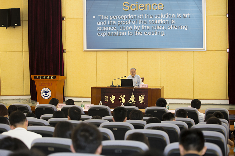 隨后,王兆凱院士開講《數(shù)學(xué)、科學(xué)、工程與工業(yè)創(chuàng)新》。講座中,王兆凱院士先通過對數(shù)學(xué)、科學(xué)、工程與工業(yè)的精確定義,并闡述各個學(xué)科之間關(guān)聯(lián),帶領(lǐng)大家回顧社會發(fā)展過程中各學(xué)科的相互推進(jìn),指出了部分學(xué)生在求知過程中的誤解。王兆凱院士認(rèn)為:數(shù)學(xué)是可證的,并可用多種方式來進(jìn)行求證;科學(xué)是客觀存在的,無需驗證但一直在改進(jìn),數(shù)學(xué)在社會發(fā)展到一定階段后才與科學(xué)產(chǎn)生了聯(lián)系;科學(xué)用于人工便是工程,工程匯聚形成工業(yè)。