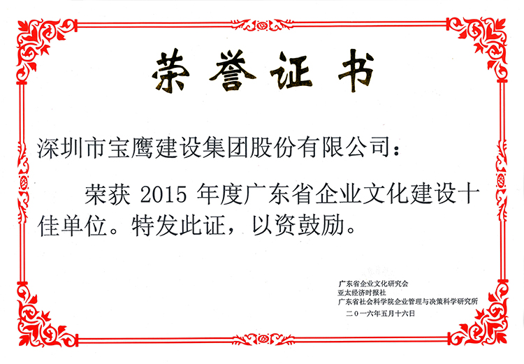 寶鷹集團(tuán)被評為“2015年度廣東省企業(yè)文化建設(shè)十佳單位”