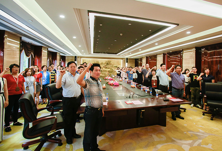 黨支部成員、國(guó)際事業(yè)部總經(jīng)理吳義課號(hào)召大家具備自我反省意識(shí)和危機(jī)意識(shí)
