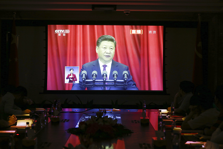 重溫莊嚴(yán)的入黨誓詞禮畢后,上午十點(diǎn),全體黨員通過(guò)網(wǎng)絡(luò)實(shí)時(shí)觀看了中央電視臺(tái)直播的建黨95周年慶祝大會(huì)。