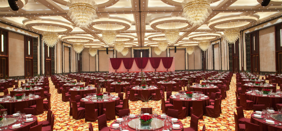 宴會(huì)廳可同時(shí)容納4,000人以上會(huì)議與用餐,也可靈活分隔成6個(gè)獨(dú)立宴會(huì)廳。