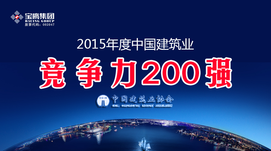 2015年度中國(guó)建筑業(yè)雙200強(qiáng)企業(yè)評(píng)價(jià)結(jié)果日前揭曉,寶鷹集團(tuán)入圍競(jìng)爭(zhēng)力200強(qiáng)企業(yè)。
