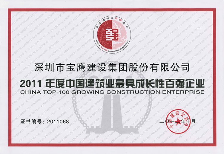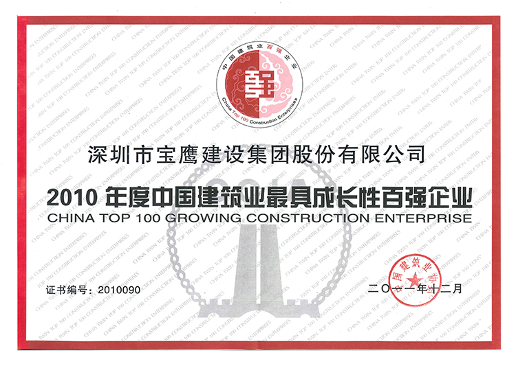 寶鷹集團(tuán)連續(xù)五年榮獲“中國(guó)建筑業(yè)最具成長(zhǎng)性企業(yè)”榮譽(yù)