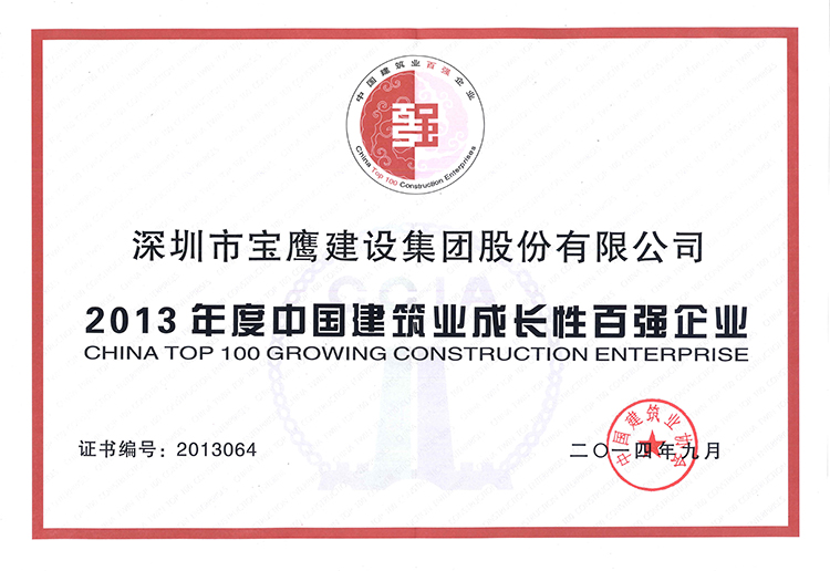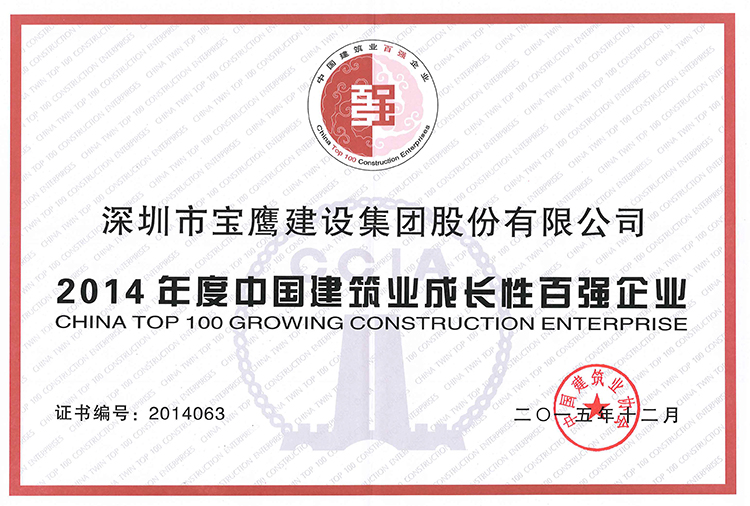 2010年——2014年,由中國(guó)建筑業(yè)協(xié)會(huì)發(fā)布的《中國(guó)建筑業(yè)雙百?gòu)?qiáng)企業(yè)》名單中,寶鷹集團(tuán)均獲得最具成長(zhǎng)性百?gòu)?qiáng)榮譽(yù)。今年首次進(jìn)入競(jìng)爭(zhēng)力榜單。在中國(guó)建筑業(yè)協(xié)會(huì)最后發(fā)布的《2015年度中國(guó)建筑業(yè)競(jìng)爭(zhēng)力200強(qiáng)》名單上,80%以上的名額被大型央企、國(guó)企獲得,寶鷹集團(tuán)作為榜單中為數(shù)不多的建筑裝飾類民營(yíng)企業(yè),此次入圍證明上市以來(lái)集團(tuán)取得的成績(jī)得到專家和社會(huì)肯定,也顯示了集團(tuán)在行業(yè)的排頭軍地位和綜合實(shí)力。