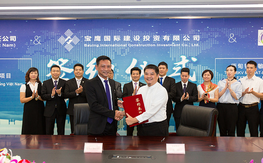 ▲寶鷹集團與四川華西(越南)有限責任公司、緬甸AMM公司簽署海外工程合同
