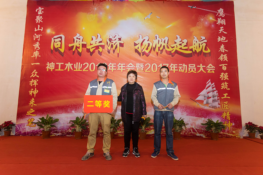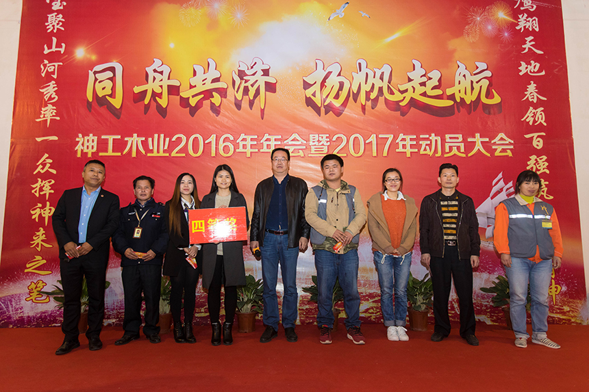 神工木業(yè)生產(chǎn)部經(jīng)理余程志在年會上表示,2017年神工木業(yè)將從工藝、質(zhì)量上尋求突破,搞好安全生產(chǎn),強力塑造神工木業(yè)品牌,并寄予神工木業(yè)員工再接再厲,在新的一年中作出更加輝煌的成績。