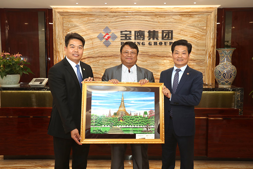 座談會(huì)上,緬甸前內(nèi)政部長(zhǎng)古古(Ko Ko)中將鼓勵(lì)寶鷹集團(tuán)走進(jìn)緬甸,并寄語雙方企業(yè)加強(qiáng)合作,互利共贏。他說,中緬兩國(guó)歷來是友好鄰邦,兩國(guó)人民之間的傳統(tǒng)友誼源遠(yuǎn)流長(zhǎng)。自從緬甸轉(zhuǎn)型改革后,兩國(guó)友好關(guān)系總體保持穩(wěn)步發(fā)展,兩國(guó)各領(lǐng)域務(wù)實(shí)合作,貿(mào)易不斷深化。特別是在民間,經(jīng)濟(jì)貿(mào)易往來密切。緬甸正處于改革發(fā)展期,需要資金、技術(shù)以及資源等的各項(xiàng)支持,希望有更多的優(yōu)秀中國(guó)企業(yè)家能走進(jìn)緬甸,投資興業(yè)。